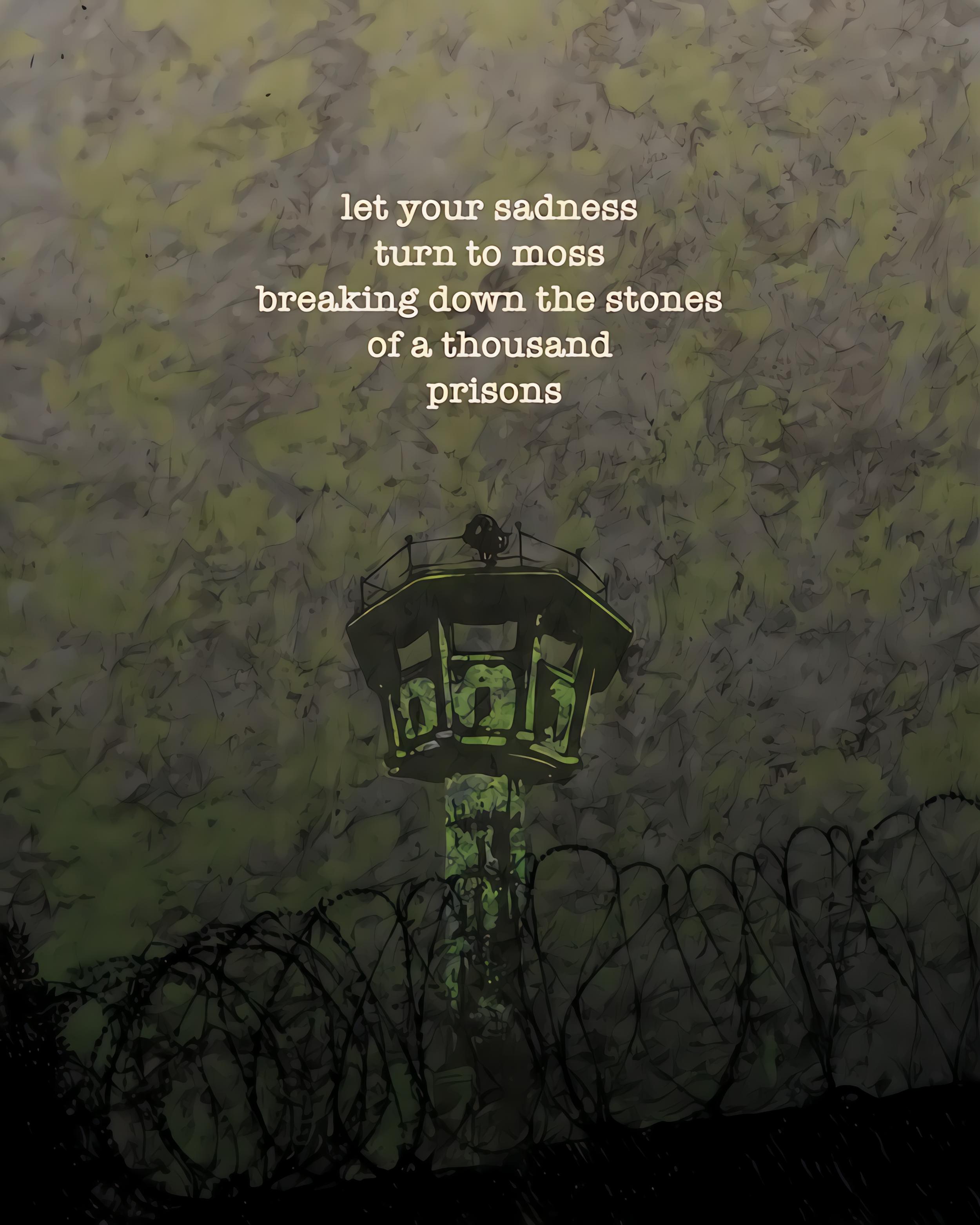 Let your sadness turn to moss breaking down the stones of thousand prisons