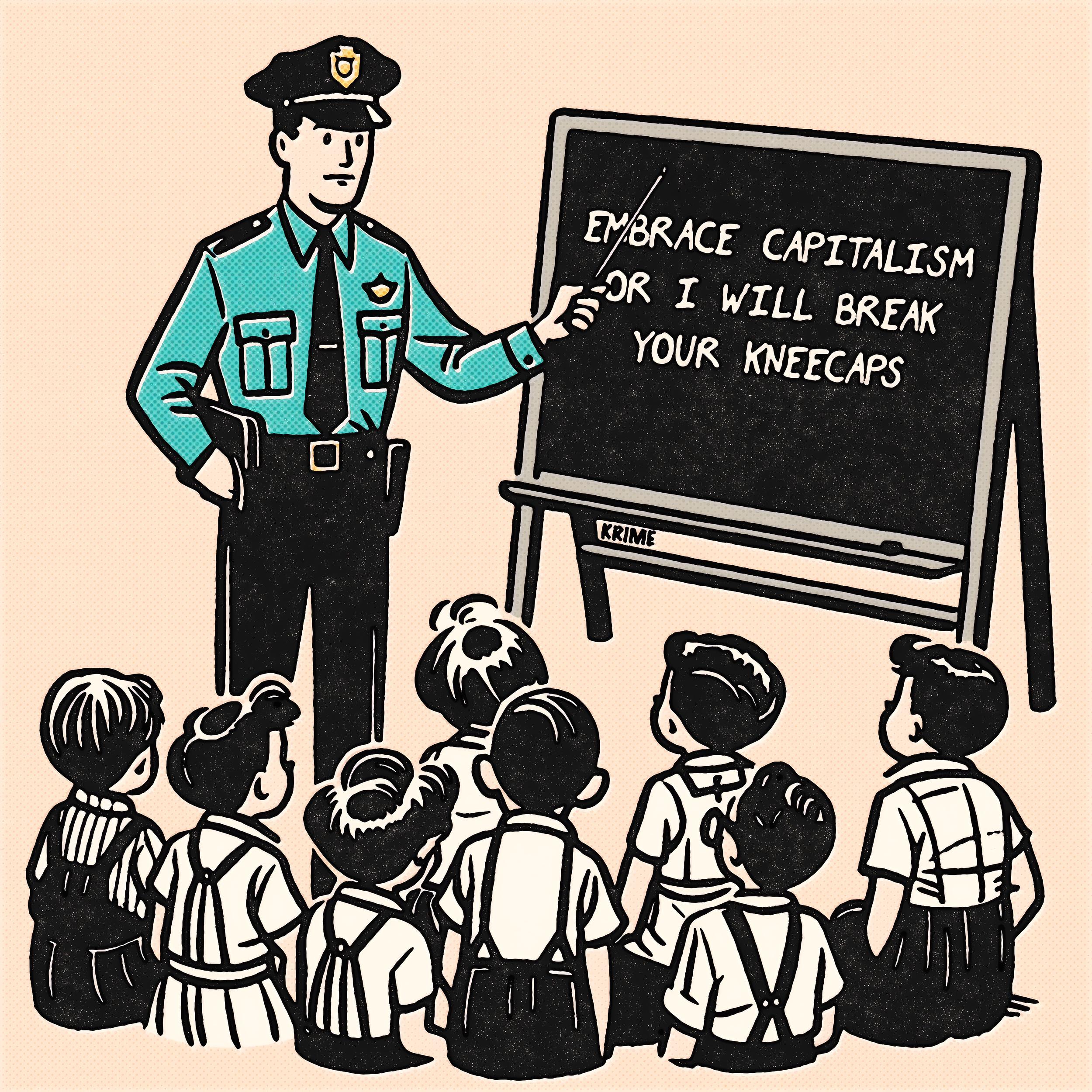 Embrace capitalism or I will break your kneecaps